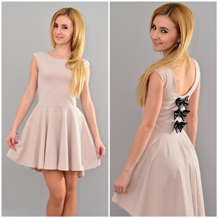 Rochia este accesorizata cu fundite la spate pentru un plus de feminitate si are o croiala speciala, putin alungita in spate.