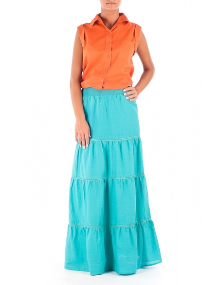 Fustele maxi sunt in trend si in aceasta vara. Indiferent daca alegi unele uni sau cu imprimeu, acestea iti vor sublinia talia si dau o eleganta aparte mersului. Le poti accesoriza cu o ie care lasa un umar la vedere, sandale cu talpa foarte joasa sau balerini.