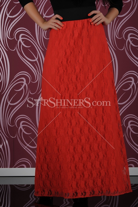 Fusta eleganta cu dantela care iti ofera un look romantic. Lungime: 114 cm.