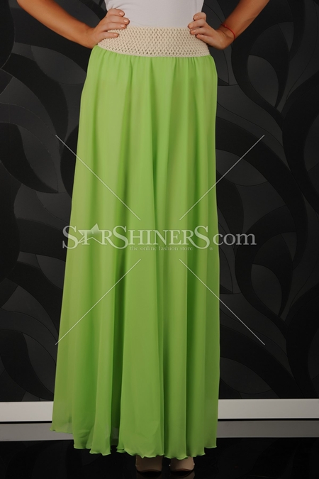 Fusta vaporoasa, ideala penteru un look divin cu insertii de broderie si elastic in talie.