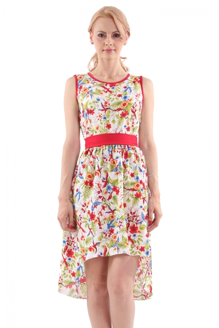 Partea superioara a rochiei muleaza perfect pe bust, partea inferioara are o croiala in clos, mascheaza foarte bine formele.Partea din fata este mai scurta decat cea din spate.