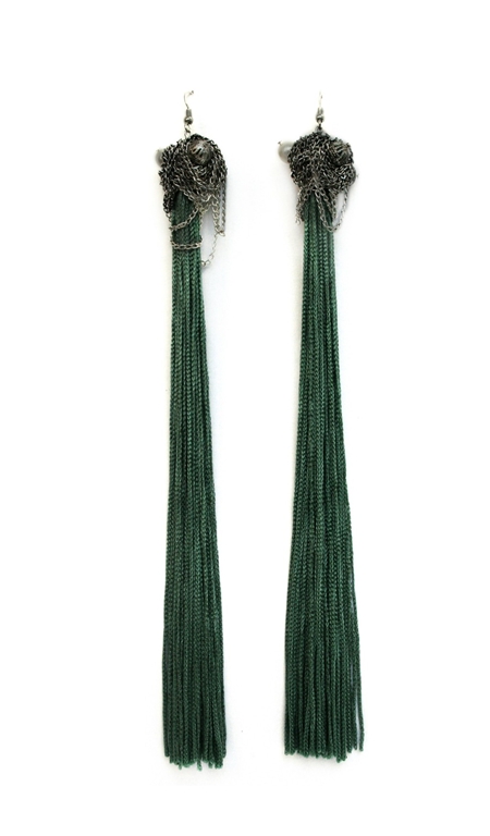 Cercei cu franjuri verzi