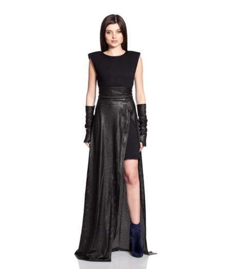 O fusta indrazneatat confectionata din piele ecologica, potrivita pentru serile calde de vara. O poti purta accesorizata cu bijuterii mari statement si un top uni. Are un slit lateral si o centura detasabila.