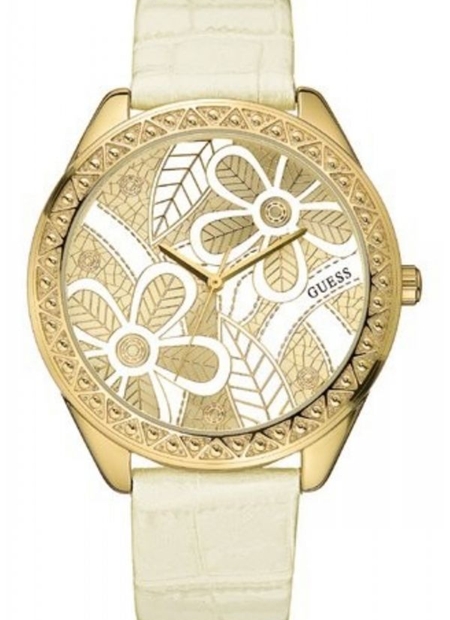 Un ceas de mana care imbina armonios stilul modern cu tiparul clasic floral, pentru a sublinia o tinuta smart casual de zi.