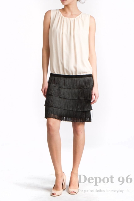 Rochia este insp0irata din moda anilor '30, atunci cand jazzul era in floare. Partea de sus este fluida si vaporoasa datorita voalului din care este confectionata iar poalele au sute de ciucuri micuti care tresalta in ritmul muzicii. Intre cele doua parti exista o banda subtire de catifea.