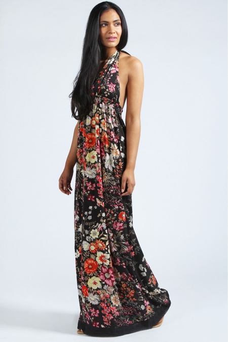 Rochie neagra maxi cu imprimeu floral