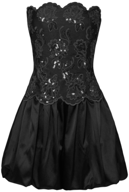 Rochie de seara din satin, fara bretele. Are corsajul brodat si decorat cu paiete si fusta gogosar. O poti accesoriza cu o pereche de pantofi peep-toe si un plic argintiu.