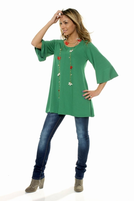 Piesa vestimentara poate fi purtata atat ca rochie, cat si ca bluza peste o pereche de jeans.