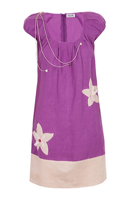 Contrastul de culoare intre trunchiul lila si insertiile florale bej fac din aceasta rochie tinuta ideala pentru o zi la birou.