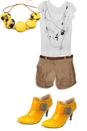 Locul 6 in Top Tinute de Revelion: Yellow FeverAccentele indraznete de galben, combinate cu o pereche de pantaloni scurti si un top imprimat, iti vor da un aer vesel si dezinhibat!