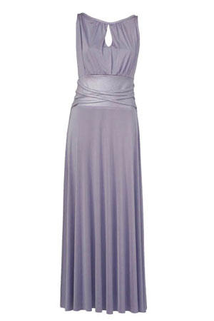 Rochie mov de la Tara Fashion, 199,90 lei. Rochie cambrata, fara maneci, lunga, din jerse. Are corset inserat cu benzi din acelasi material, suprapuse.