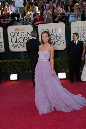 Olivia Wilde, actrita din serialul House M.D., a fost fermecatoare intr-o rochie de culoarea lavandei creata de Reem Acra.
