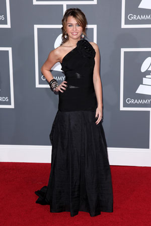 Miley Cyrus a purtat o rochie neagra Herve Leger, nepotrivita varstei (16 ani) si stilului ei energic.