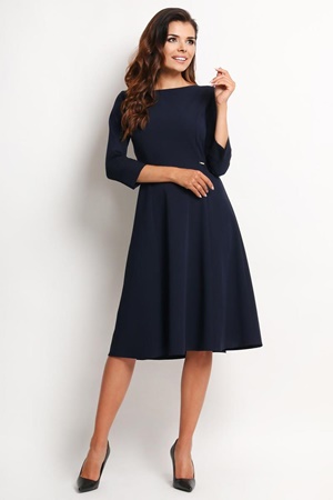 O rochie midi simpla dar sofisticata este o alegere inspirata pentru petrecerea de Revelion. O poti accesoriza cu bijuterii delicate pentru un plus de eleganta.