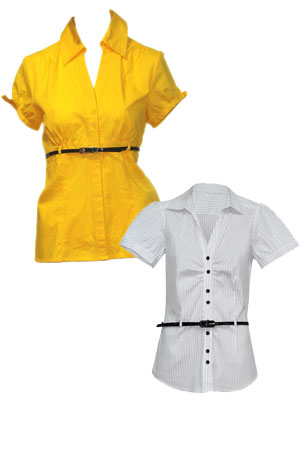 Camasile purtate cu o curelusa subtire iti vor accentua talia! Alege galbenul intens (culoarea anului 2009), pentru un look foarte modern sau albul cu dungi subtiri, pentru o tinuta primavaratica in stil college.Camasa galbena La Femme, 79,9 lei.