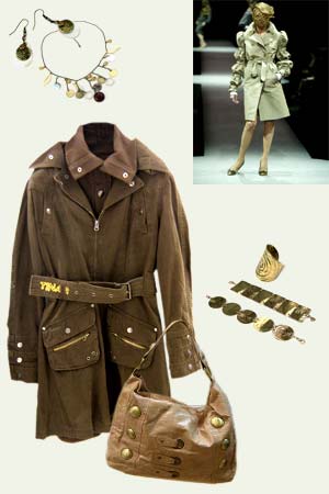 Trenciul este o alta cerinta pentru femeia de cariera. Culorile sunt calde si sterse, dar in toate cazurile: maro de tipul hartiei de ambalat, gri de tipul cimentului, bej si gri inchis. Daca sezonul trecut propunea culori vii, acum nuantele suprima energia cromatica. Nu lipsesc strasurile si aplicatiile metalice: butoni, capse, fermoare si catarame. Accesoriile sunt minimale, insa se folosesc pentru completarea tinutei. Fie ca sunt metalice sau din materiale usoare, nuantele uni sunt preferabile.