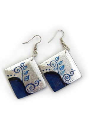 Cercei pictati pe foita argint de la Ama Fashion, 52 lei.