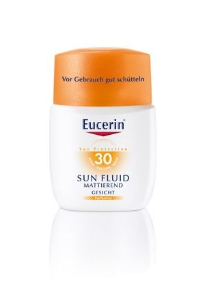 Vara le face pe femeile tinere sa se confrunte cu doua probleme ale tenului - pe de o parte, vor ca pielea sa ramana mata toata ziua, insa, pe de alta parte, isi doresc sa fie protejate contra radiatiilor UVA si UVB. La aceste probleme s-au gandit si specialistii Eucerin, atunci cand au creat fluidul matifiant cu factor de protectie solara!Fluid matifiant cu FPS 30 de la Eucerin, 55,69 lei. Special conceput pentru tenul normal si mixt, produsul este o excelenta baza de machiaj, are o textura lejera, nu lasa urme de grasime si este rezistent la apa.