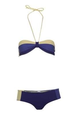 Costum de baie albastru cu bej de la Mango