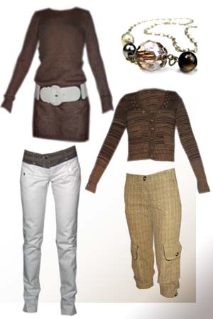 Tonurile de maro si materialele fine, asemanatoare casmirului, revin in atentia designerilor. Puloverele lungi, in stilul anilor '80 sunt purtate cu pantaloni-tigareta si cu centuri late sau subtiri, care marcheaza talia. Pantalonii 3/4 si cizmle inalte pana la genunchi formeaza o combinatie excelenta, cu atat mai mult cu cat stilul-jocheu este la mare cautare...