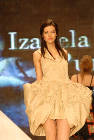 Izabela si Cristiana Purdescu au prezentat o alta colectie in a doua seara a evenimentului. Aceasta readuce in atentie mirajul stilului retro imbinat cu influente etno. Insa volumele care supradimensioneaza soldurile contrasteaza cu gulerul mult prea cuminte din partea de sus a rochiei.