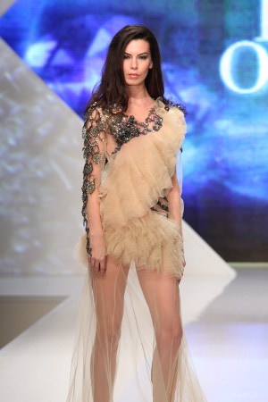 Laura Olteanu a prezentat colectia "Nude". Elementele caracteristice stilului sau nu lipsesc nici de aceasta data: extravaganta si stralucirea. Insa croiala nu pare sa avantajeze nici un tip de silueta. Volumele nu sunt bine definite si rochia pare neterminata.