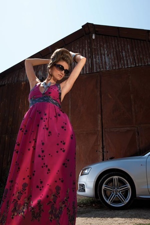 Matasea este un material care pune in valoare feminitatea, "pastrand aceeasi prospetime ziua si seara". Intr-o culoare puternica, fuchsia, este o rochie ideala pentru un eveniment important.