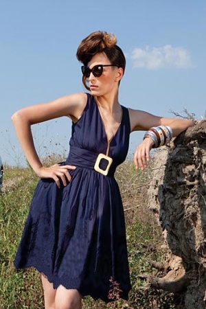 Rochie din bumbac intr-o nuanta albastru-indigo. Cureaua din acelasi material subliniaza talia, iar lungimea medie o transforma intr-o tinuta potrivita pentru mai multe ocazii. Pentru a vizualiza colectia completa dar si datele de contact, accesati site-ul care va poate oferi mai mult detalii: http://www.elenaperseil.com/.
