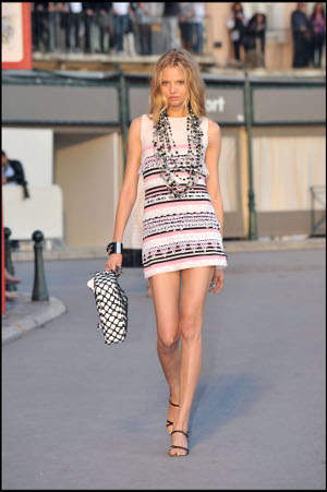 Prestigioasa casa Chanel si-a prezentat la Saint Tropez noua colectie: "Croisiere 2010". Lasand la o parte stilul clasic obisnuit, Karl Lagerfeld a optat pentru un decor original si rochii fluide, imprimate, accesorizate cu bijuterii in exces. Sa ne lasam purtate de mirajul vacantei si al croazierelor de lux, admirand colectia Chanel, de un rafinament deosebit.
