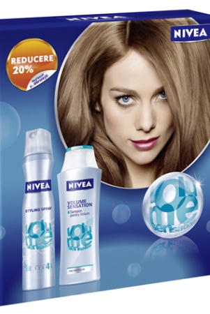 1. Pachetul NIVEA Volume Sensation care include:- samponul NIVEA Volume Sensation ce ii ofera parului un volum impresionant, de lunga durata, de la radacina si pana la varfuri;