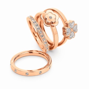 2. Bijuterii din Colectia Gift Wonder de la Folli FollieSetul de inele din otel inoxidabil, placate cu argint sau aur roz, are modele in forma de floare sau trifoi, decorate cu pietre de cristal. Inelele pot fi combinate si purtate in functie de ocazie, de tinuta sau de starea de spirit si sunt prezentate intr-un ambalaj elegant, o cutie de cadou lacuita.
