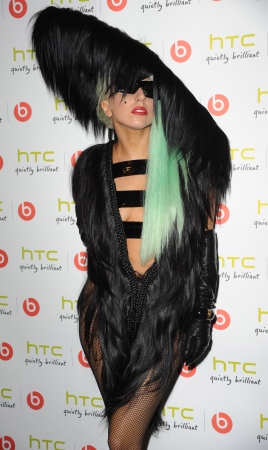 Solista este o fana declarata a palariilor extravagante. De aceasta data si-a ales una voluminoasa, neagra, din par. Aparitia ei nu era suficient de socanta daca nu purta si o rochie decupata confectionata tot din...par negru.
