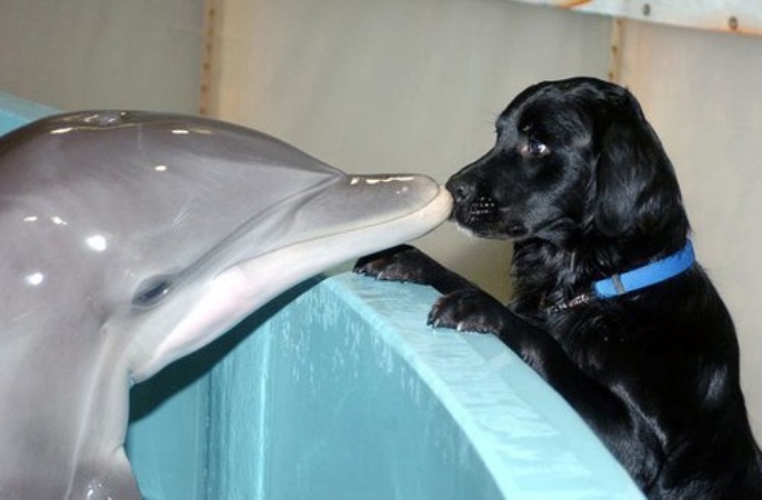Un catel la delfinariu!