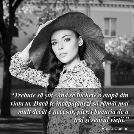 “Trebuie sa stii cand se incheie o etapa din viata ta. Daca te incapatanezi sa ramai mai mult decat e necesar, pierzi bucuria de a trai si sensul vietii.” – Paulo Coelho