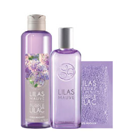 O minunata idee de cadou ce contine un gel de dus, sare de baie si apa de toaleta, toate cu parfum de liliac.