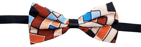 Papion imprimeu geometric, maro, cu panglica lunga, neagra, pentru prindere