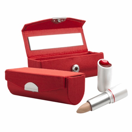 Suport elegant de culoare rosie, dotat cu o oglinda, in care isi va gasi locul rujul preferat.
