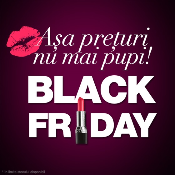 Perioada Black Friday incepe pe 18 noiembrie si dureaza atat cat clientii sa poata profita de cele mai frumoase oferte la produsele preferate. Pentru ca anul trecut ofertele de Black Friday au fost disponibile numai pentru reprezentantii Avon, anul acesta clientii se pot bucura de aceleasi discount-uri si de aceleasi surprize placute.