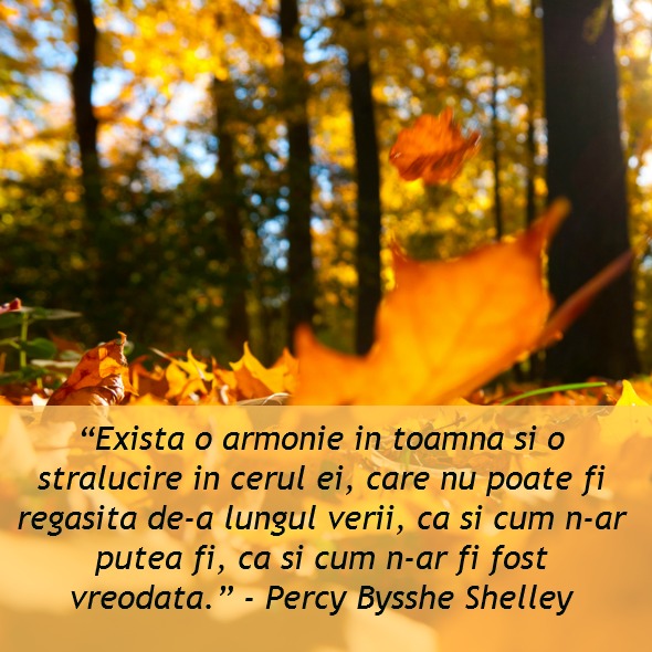 “Exista o armonie in toamna si o stralucire in cerul ei, care nu poate fi regasita de-a lungul verii, ca si cum n-ar putea fi, ca si cum n-ar fi fost vreodata.” Percy Bysshe Shelley