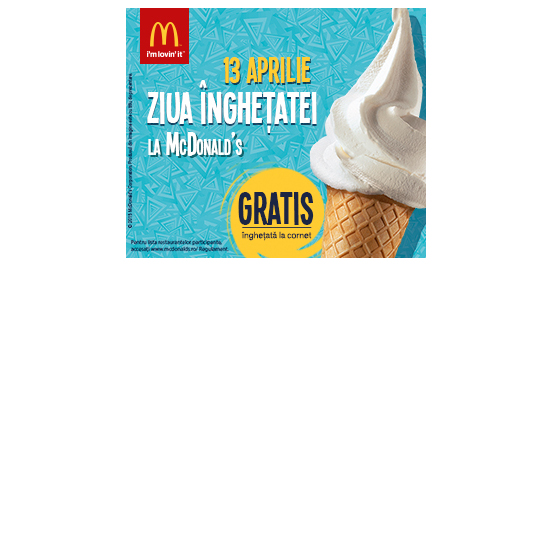 Sezonul de vara incepe pe 13 aprilie cu Ziua Inghetatei! McDonald's sarbatoreste, pentru al treilea an consecutiv in Romania, Ziua Inghetatei. Cu aceasta ocazie, McDonald's a pregatit o surpriza speciala, cu gust de vara, pentru toti fanii sai.