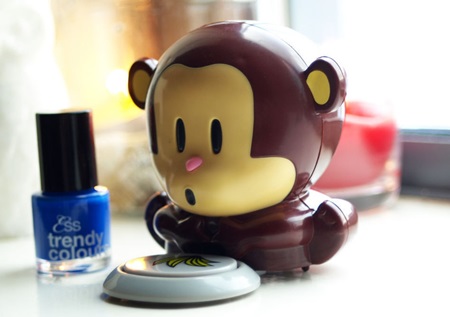 Nu este vorba de un spectacol la circ, dragilor, ci despre unghiutele fashionistelor noastre dragi. Maimutica Mani-Pedi este un personaj serios, nu umbla cu jonglerii si circoteci ci usca dintr-o suflare oja de pe unghii. De fapt, aceasta poate fi asemuita cu maimutica cu suflu magic din poveste, care iubea peste putinta copiii iar misiunea ei era sa calatoreasca prin toata lumea, sa se opreasca in casele oamenilor si sa sufle putina magie peste ei, pentru ca acestia sa aiba cele mai frumoase vise in timpul noptii. Maimutica Mani-Pedi are si ea suflul magic si este ultra-portabila. Toate doamnele si domnisoarele fashioniste care au cunoscut-o pot confirma lucrul acesta.