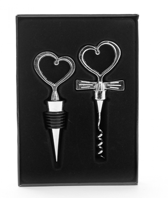 Setul de vin este format dintr-un tirbuson si un capac pentru sticla. Dincolo de aspectul practic al acestor elemente, impreuna reprezinta un cadou minunat de Ziua Indragostitilor datorita terminatiei in forma de inimioara.
