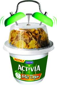 Danone Romania va ofera in aceste zile Activia Mic Dejun cu topping de cereale - un produs hranitor si gustos - combinatie consistenta de iaurt Activia si cereale crocante.Noul Activia Mic Dejun, iaurt cu fulgi crocanti de cereale, este un aliment consistent, care aduce organismului proteine, carbohidrati, grasimi, dar si 30% din necesarul zilnic de calciu si are circa 200 kcal. Alege si o portie din fructele tale preferate – si ai un mic dejun cu adevarat sanatos.