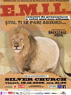 Nu in ultimul rand, am fost anuntati ca evenimentul Megaromania programat initial sa aiba loc duminica, 20 decembrie, la Silver Church, a fost amanat (data eventualei reprogramari ramanand inca nestabilita). Concertul celor de la E.M.I.L., de vineri 18 decembrie, ocazionat de lansarea albumului “Stiu ca ti se pare absurd...” ramane in picioare pe agenda Silver Church-ului, si sunteti asteptati sa ii onorati pe baieti cu prezenta, de la 21:30.
