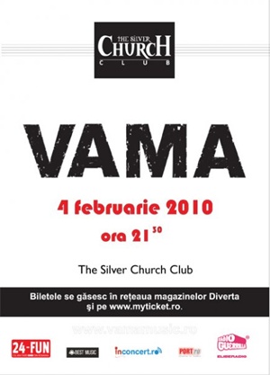 In Silver Church insa, de la 21:30, un alt concert, doar ca de proportii putin mai comerciale, se profileaza la orizont: lacasul de argint le ofera “sanctuar” baietilor de la Vama, iar studentii fan-atici dupa formatia adolescentei lor beneficiaza de pret redus. Daca probabil se vor intona la greu cunoscutele refrene verane, iubarete si melodioase, baietii lui Chirila promit si doua surprize pe langa materialul de pe vremea Vamii... Vechi – fiti pe faza, joi se canta-n prima auditie doua piese nou-noute!