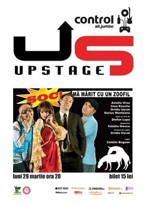 Luni, ca in fiecare luni, in club Control din Academiei 19 se pune in scena o piesa de teatru, sub umbrela organizarii Upstage. De data asta, ora 20:00 vine cu aceesi cutezanta alternativa dar cu lume noua, nu un one-woman show cum am mai vazut inainte pe scena din spatele clubului. Este vorba de piesa “Ma marit cu un zoofil”, care e rezumata in micul text de prezentare de mai jos. In distributie: Amelia Ursu, Irina Enache, Ovidiu Usvat si Darius Munteanu, interpretand un text de Stefan Lupu si ghidati de regia lui Catalin Iliescu.“O zi normala din viata a doua pitipoance: fericire, tristete, moarte, rom cu cafea, nunta si o luna de miere! Pitipoanca – neroada si vulgara care-ti zgarie timpanul si retina si este angrenata intr-un singur drum spre fericire cu un singur motiv: banii. Aceasta este specia pitipoancelor adevarate!"