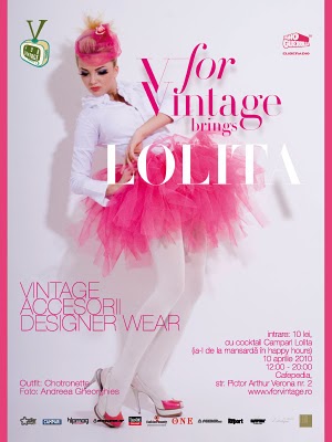 Sambata, in toiul pranzului, targul V for Vintage isi expune accesoriile si hainutele la Cafepedia de pe Arthur Verona 2, in cadrul unui eveniment tematic menit sa trezeasca puberele din noi toate, acele Lolita indragite de Nabokov in romanul omonim. Asadar, dress-code-ul impus de neobisnuita inspiratie va fi pe masura, roz, ingenuu, tineresc si sexy laolalta intr-un ambalaj cu fundita obraznica.