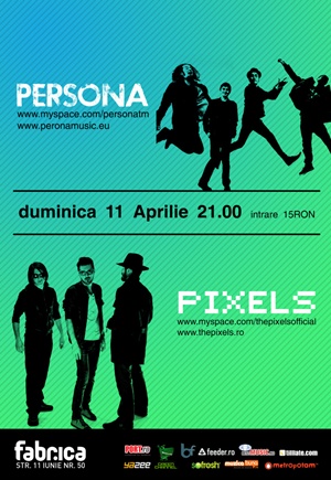 Duminica, de la 21:00, timisorenii de la Persona si mai cunoscutii the Pixels, vor sustine un concert in Club Fabrica, de unde rock-ul lor cu influente electro va rasuna mai cu ecou si noi vom fi acolo sa inregistram pentru posteritate asa o alaturare de nume care cu siguranta vor scoate scantei impreuna.