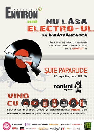 Clubul Control nici n-a terminat bine cu festivalul alternativ ca i-a si invitat pe baietii de la Suie Paparude sa sustina un concert miercuri, incepand cu ora 22:00. Neobositi organizatorii de evenimente din Control, spre marea satisfactie a urechii noastre inamorate de muzica buna! Desigur ei au in spate pentru acest eveniment Asociatia Environ, sub al carui moto “Nu lasa electro-ul sa imbatraneasca!” se desfasoara toata intreprinderea. Cum sa contribui la tineretea asta care se vrea vesnica? Ei bine, vino cu “ouse-ul, aparatul foto, boxele, castile, casetofonul, magnetofonul, incarcatorul, telecomanda, televizorul, mobilul sau orice alte electronice & electrocasnice vechi sau neoane arse mai ai prin casa”. Daca o faci, intri gratuit la concert!