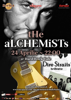 Tot sambata, in Hard Rock Cafe, trupa The Alchemists va aduce un tribut formatiei Dire Straits, sub forma unui concert, desigur. De la 22:30, ne vom umple timpanele si inimile cu melodiile epocii lor de aur, cand “Money For Nothing”, “Brother in Arms”, “Romeo And Juliet”, “Lady Writer”, “Sultans Of Swing” sau “Walk Of Life” cucereau toate topurile.